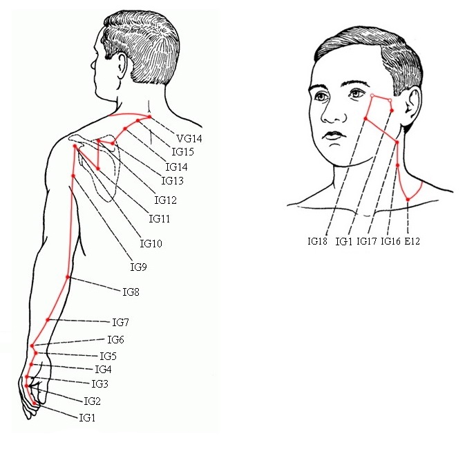 Меридиан тонкой кишки – парный, симметричный, центростремительный, относится к системе ян. насчитывает 19 точек акупунктуры на каждой стороне.