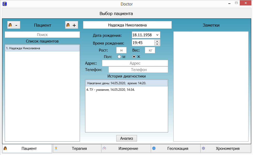 Приложение “Doctor” допускает ручной ввод результатов измерения, что позволяет использовать другой измерительный прибор.