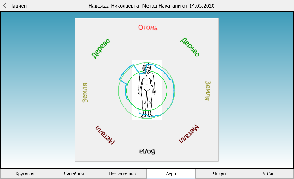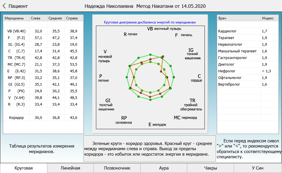 Результат измерения проводимости в репрезентативных точках корректируется алгоритмом предложенным В.М. Кимом с целью аппроксимации всех меридианов для согласования с картой риодораку Накатани.