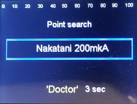 Точкам Накатани треба вибрати струм 200мкА. Метод Накатані передбачає вимірювання 12 точок як зліва, так і праворуч на тілі пацієнта. Практика показала, що для оцінки стану тіла досить виміряти кілька точок Накатані, у яких спостерігається аномалія. У приладі передбачено створення єкспрес рецепту точок Накатані. Вибір близько 5 точок (не менше трьох) з 12 точок Накатані дозволяє проводити вимірювання тільки ліворуч, та (або) праворуч. Процес вимірювання спрощується та прискорюється. Перегляд статистики виміру за обраний проміжок часу покаже стан меридіанів даних точок.