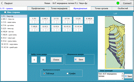 Наприклад, виміряємо точки Тривоги (меню «Функціональні»). Мал.14.