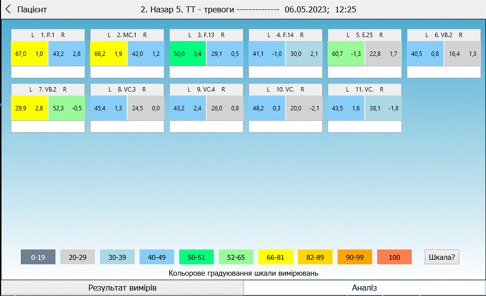 Натискаємо на кнопку «Аналіз» та переходимо на кольорове трактування результатів вимірювань Мал.16.