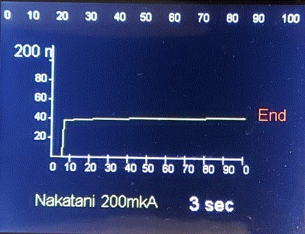 Вибір режиму проводиться тиском на відповідну радіо-кнопку в квадраті «Режим». Для проведення тестування, необхідно перевести прилад в режим «Nakatani 200µA». Тестування проводиться за п’ять проходів. Ведеться нумерація циклу