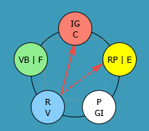 Таким чином, зв'язок, що є зовнішнім, здійснюється по колу циклічності, а деструктивна, будучи внутрішньою, здійснюється всередині «кола циклічності» (так званий цикл зірки).