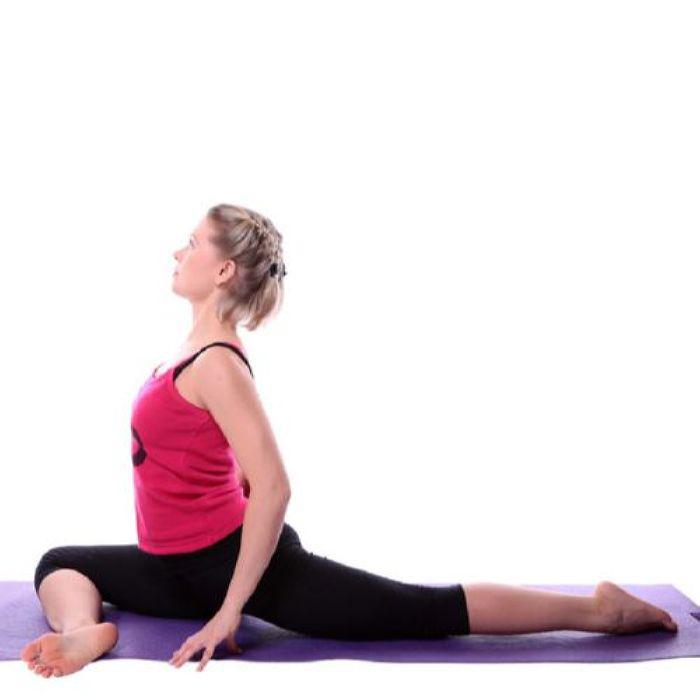 Опустите таз вниз, выпрямите спину.