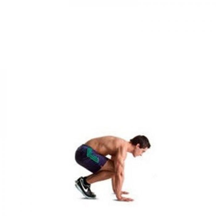 1. Глубокое приседание, руки на полу. Вдох.