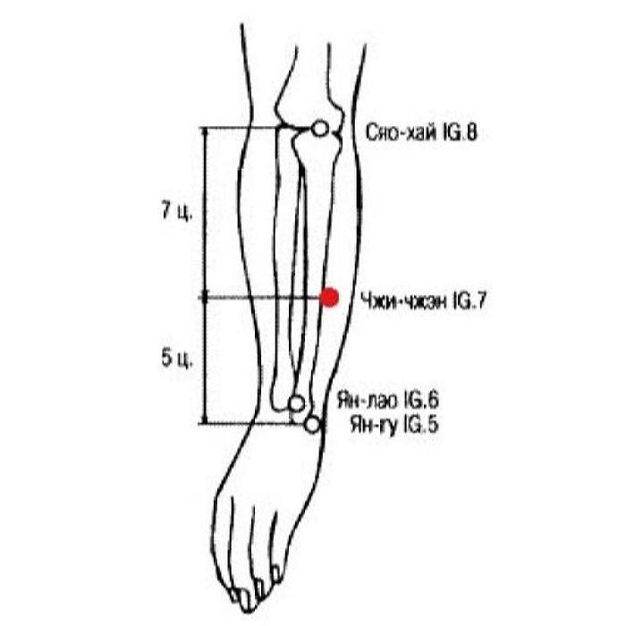 1. Чжи-чжэн IG.7 - точка коллатерали ручного тай-ян канала тонкого кишечника. В каноне «Лин шу» говорится: