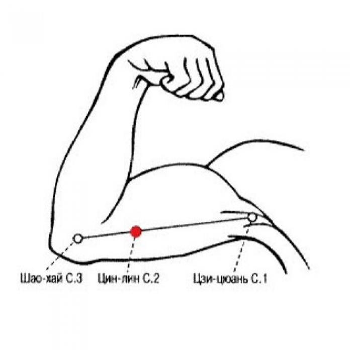 Функции: точка Цин-лин С.2 расположена на медиальной поверхности плеча, в основном используется при локальных болевых синдромах — боли и ограничении подвижности в плечевом суставе, боли в плече.