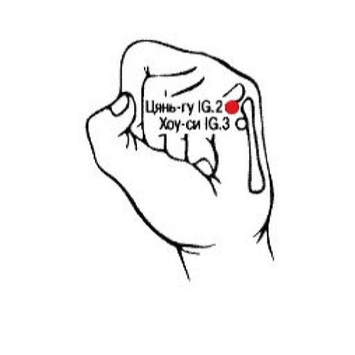 • Шум в ушах: Цянь-гу IG.2, Хоу-си IG.3, Пянь-ли GI.6, Да-лин МС.7.