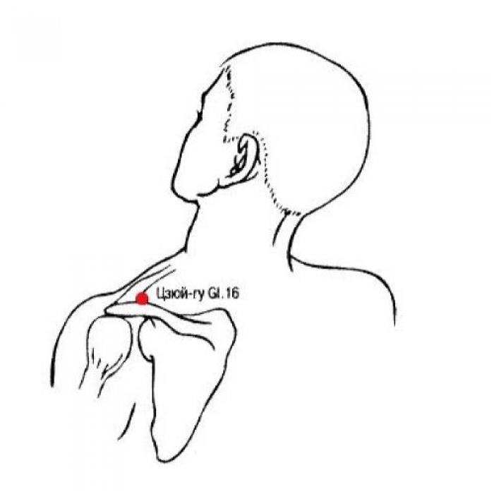 Функции: основными показаниями для использования точки Цзюй-гу GI.16 являются различные локальные нарушения по ходу ручного ян-мин канала толстого кишечника на верхней конечности. Ее применение способствует восстановлению свободной циркуляции Ци и распрямлению сухожилий, устранению нарушений двигательной функции верхней конечности.