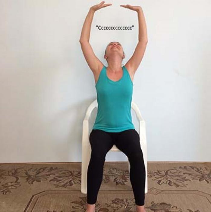 Сожмите челюсти так, чтобы зубы едва касались и слегка разъедините губы. Медленно выдыхайте сквозь зубы звук «Сссссссссс». В начале вы можете произносить звук громко, но со временем вам лучше практиковать его мысленно.