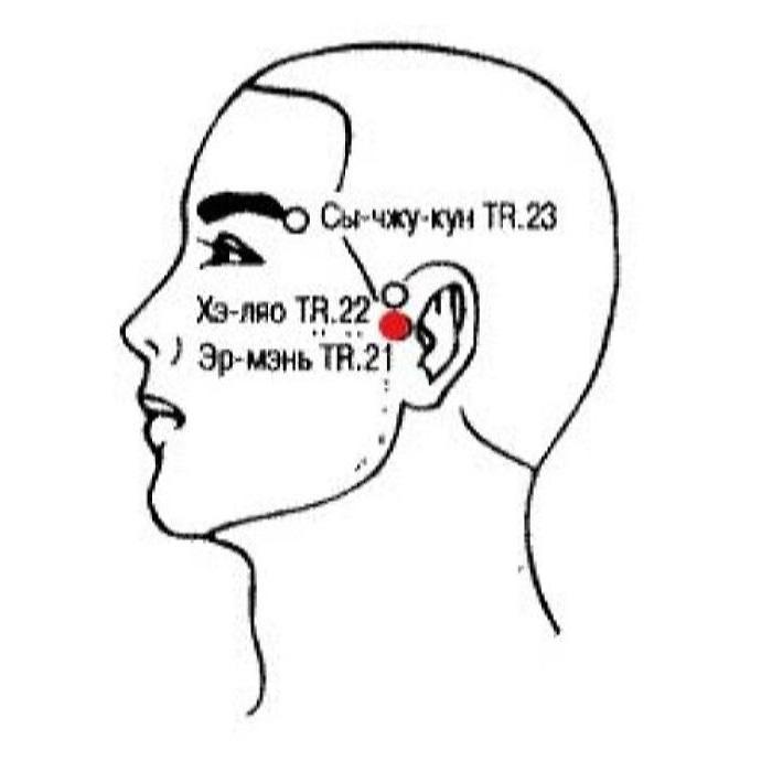 • Зубная боль: Эр-мэнь TR.21, Сы-чжу-кун TR.23.