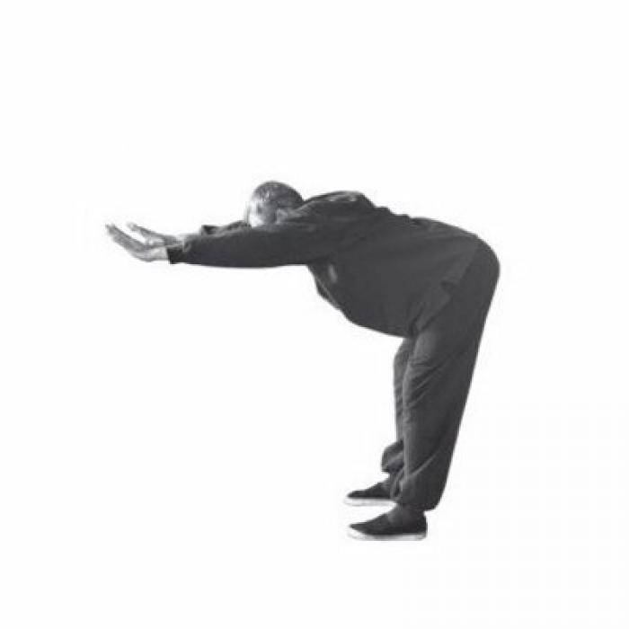 Здесь вдох плавно сменяется выдохом: удерживая позвоночник прямым, как палка, начинаем наклон вперед как бы «изломом» в тазобедренных суставах. Руки не опускать, сохраняя натяг, ноги в коленях не гнуть (однако и «выключать» их прогибом также не следует). Чтобы руки не перевешивали, вынуждая напрягать колени и ступни, сместите центр тяжести назад, слегка отклонившись в стойке. Когда корпус займет почти горизонтальное положение, позвольте прямым рукам опуститься и сделать «гребок». Выдох окончен. Начинается новый вдох – выпрямляемся, руки идут назад и – следующий цикл.