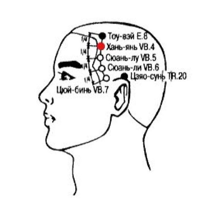 • Боль в одной половине головы: Сюань-лу VB.5, Хань-янь VB.4.