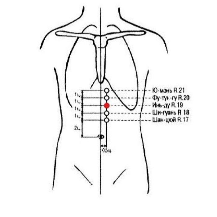 1. Инь-ду R.19 расположена на животе, является локальной точкой лечения болезней кишечника и желудка.