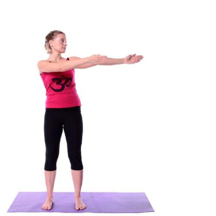 Вытяните руки вперед, они параллельны. Ладони смотрят друг на друга.