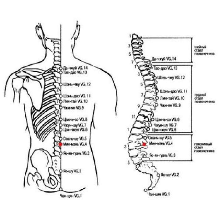 В данном случае речь идет о II поясничном позвонке, то есть о точке Мин-мэнь VG.4.