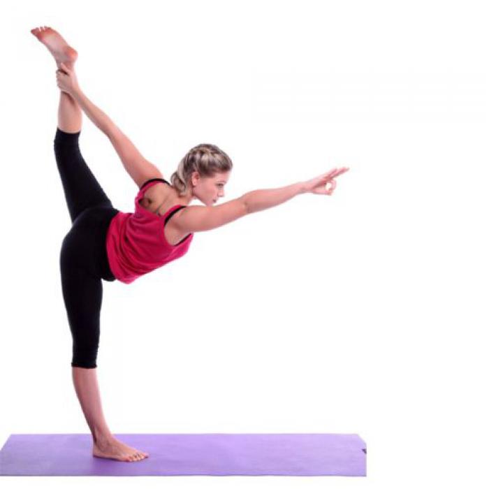 Заворачивайте левое бедро внутрь и выравнивайте верхнюю часть таза. Поймав баланс в этом положении, вытяните правую руку вверх, заведите ее за голову и захватите левую стопу. Опуская плечи вниз и разворачивая их наружу, поднимайте грудную клетку. Не забывайте вытягивать левую ногу назад.