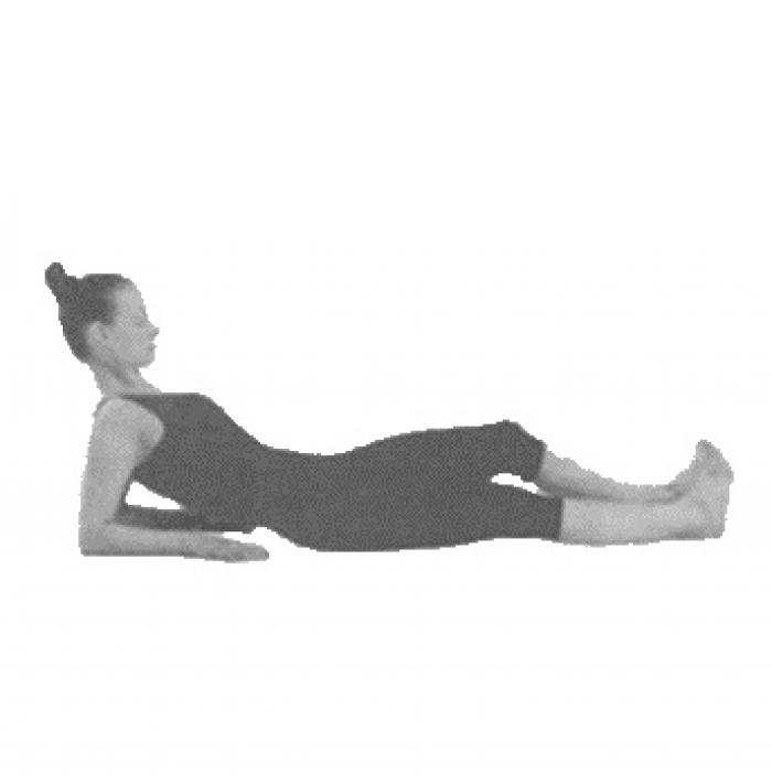 • Лягте на пол и, опираясь на локти и предплечья, поднимите верхнюю часть туловища так же, как в предыдущем упражнении.