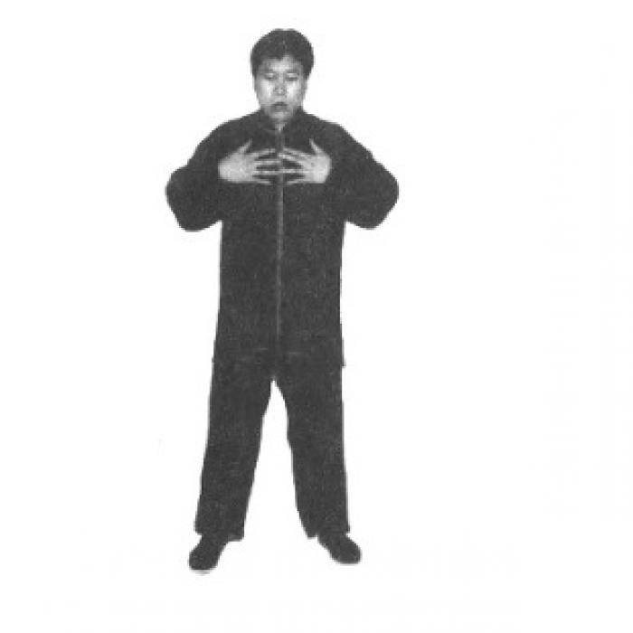 Двумя руками синхронно прохлопать туловище спереди сверху вниз (от шеи до лобка) и на уровне поясницы (от боков к С я даньтянь).