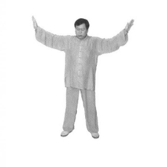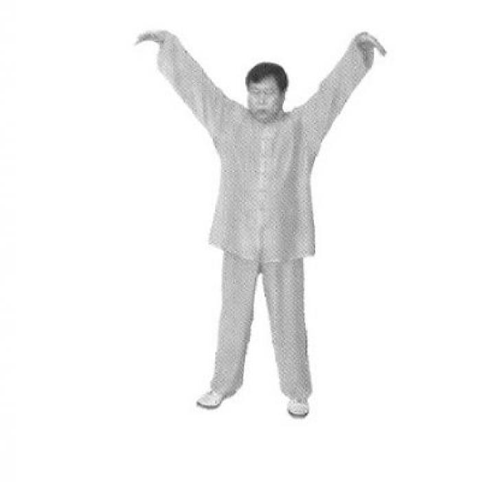 И снова, опуская руки вниз, оттолкните свое тело, подобно птице, а выходящая через ступни ног энергия поднимает вас и переносит в следующий мир. При этом вы плавно поднимаетесь на цыпочки. Закончив выдох, медленно опуститесь на пятки.