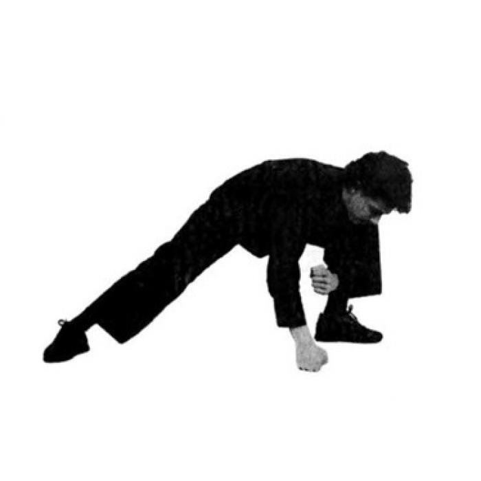 Нагнитесь вперед как можно ниже, чтобы ваши руки и локти касались пола.