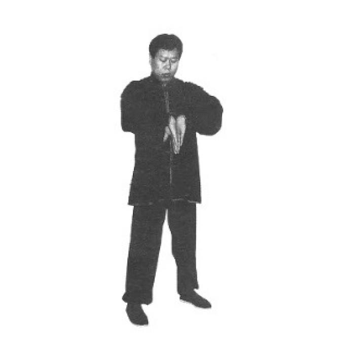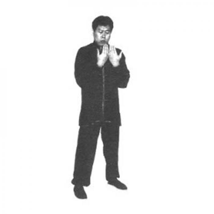 3. Открыть ладони к себе, вращательным движением на себя опустить кисти рук пальцами вниз таким образом, чтобы кисти сомкнулись тыльной стороной.