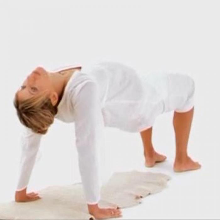 Ваше тело должно принять положение, параллельное полу, а руки и ноги должны стоять вертикально. Голова при этом запрокинута назад.