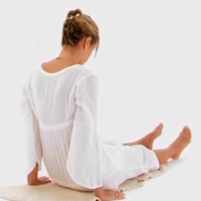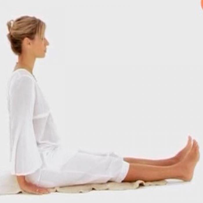 ВыбратьСядьте прямо, ноги вытяните перед собой, ступни вместе. Руками упритесь в пол рядом с бедрами, опустите голову, подбородок прижмите к груди. Положение рук чрезвычайно важно — они должны быть точно напротив бедер!