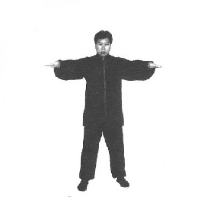 2. Медленно поднять руки в стороны до уровня плеч, ладонями вниз.
