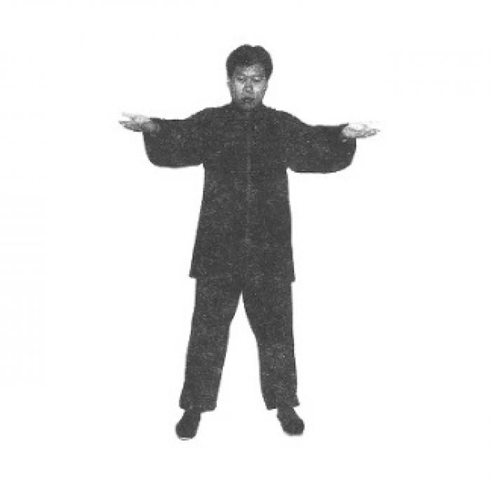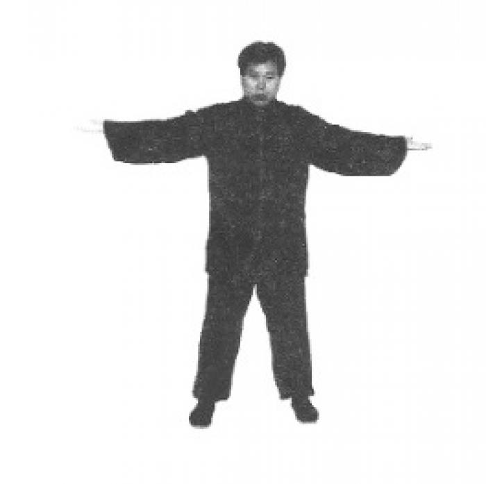 4. Разведя руки в стороны последний раз, повернуть кисти ладонями вниз и медленно опустить руки вдоль туловища.