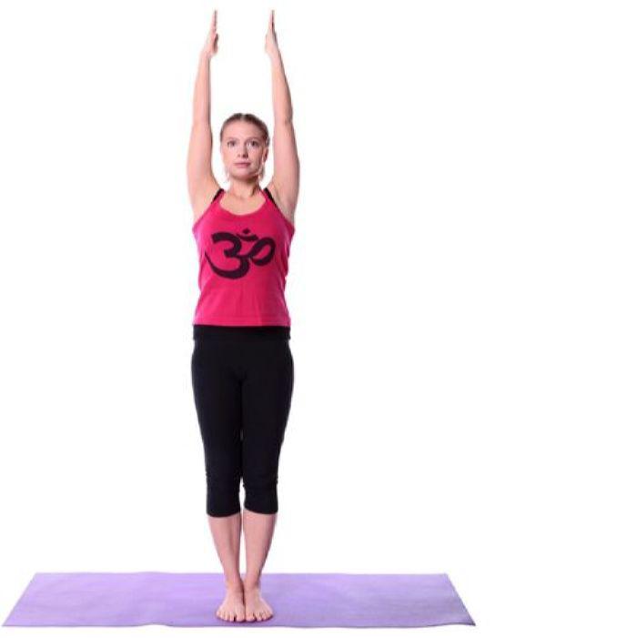 Находясь в позе Тадасана поднимите руки вертикально вверх, ладонями друг к другу. Вытяните шею вверх, расслабьте лицо и смотрите прямо перед собой. Держите позу в течение 30—60 секунд.