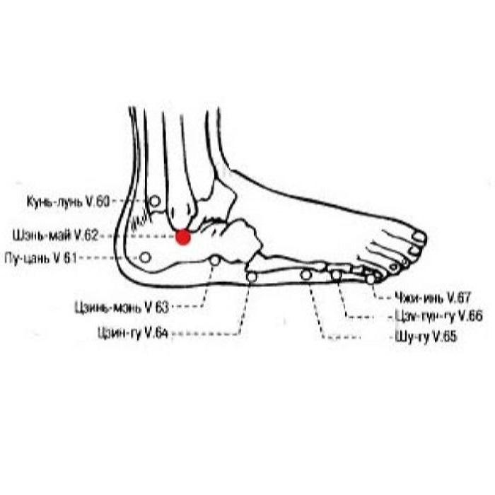 • Боль ниже лодыжки: прижигание Чжао-хай R.6 и Шэнь-май V.62.