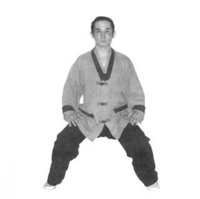 Необходимо чтобы стопы были параллельны, а расстояние между ними составляло две ширины плеч. Бедра должны быть поданы назад подобно всаднику, сидящему на лошади. Колени необходимо развернуть наружу, но так, чтобы с передними частями стопы они составляли одну прямую линию. Следите, чтобы ягодицы были подобраны, а спина абсолютно прямой — это влияет на область почек и усливает циркуляцию ци в этих органах нашего тела, а также укрпе- ляет область поясницы.