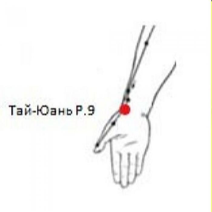 Таким образом, Тай-юань Р.9 — важная точка нормализации функций легких, содействует восстановлению функции легких по распространению Ци и жидкостей тела по организму, охлаждению жара легких, осаждению аномального поднятия Ци легких.