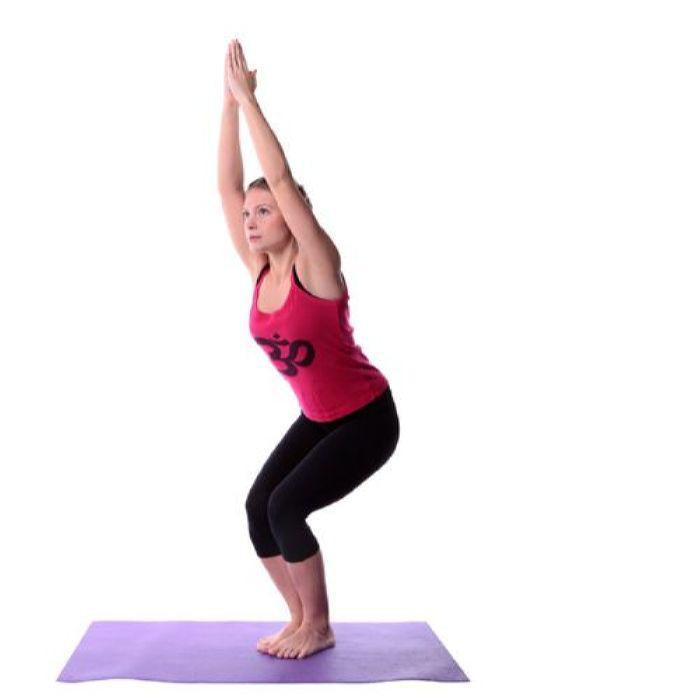 Эта поза выглядит так, словно вы сидите на воображаемом стуле. Уткатасана увеличивает подвижность плеч и щиколоток, укрепляет ноги, тонизирует позвоночник и органы брюшной полости, полностью раскрывает грудную клетку.