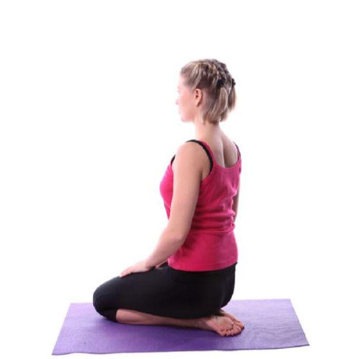 Встаньте на колени. Стопы вместе, пятки прижаты друг к другу.