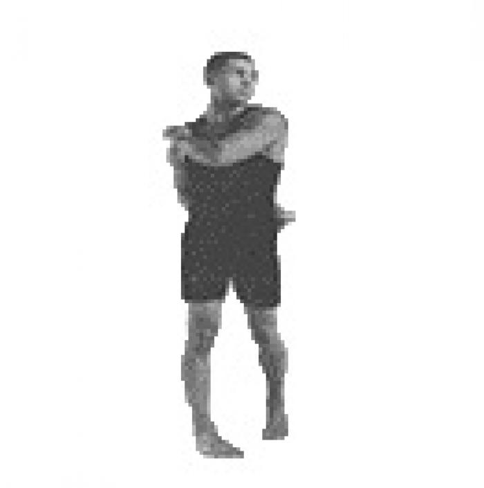 • Разведите прямые руки в стороны до уровня плеч, ладони обращены вниз.