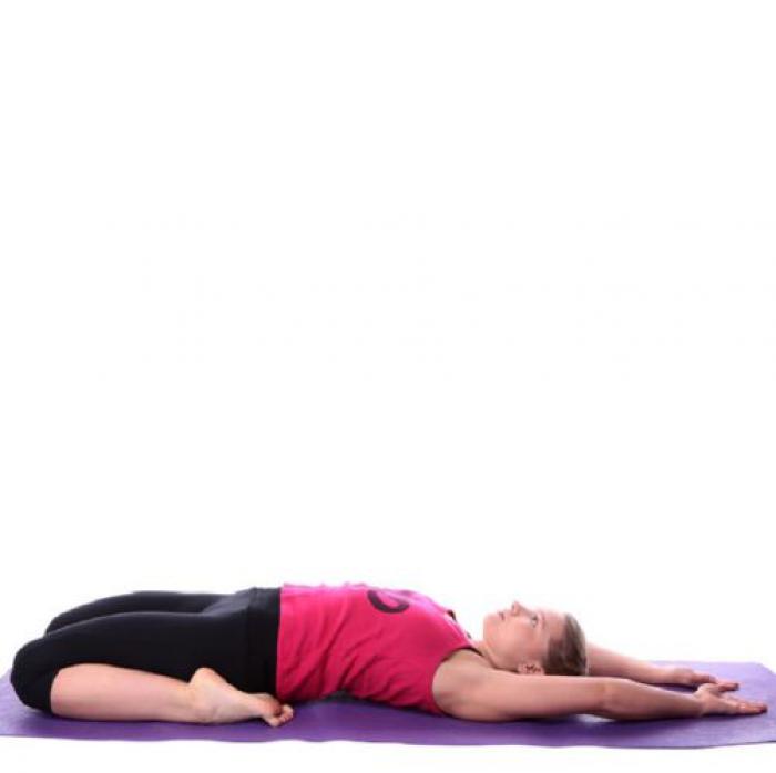 Затем опустите руки вдоль корпуса, прижмите локти к полу и на выдохе вернитесь в положение сидя.